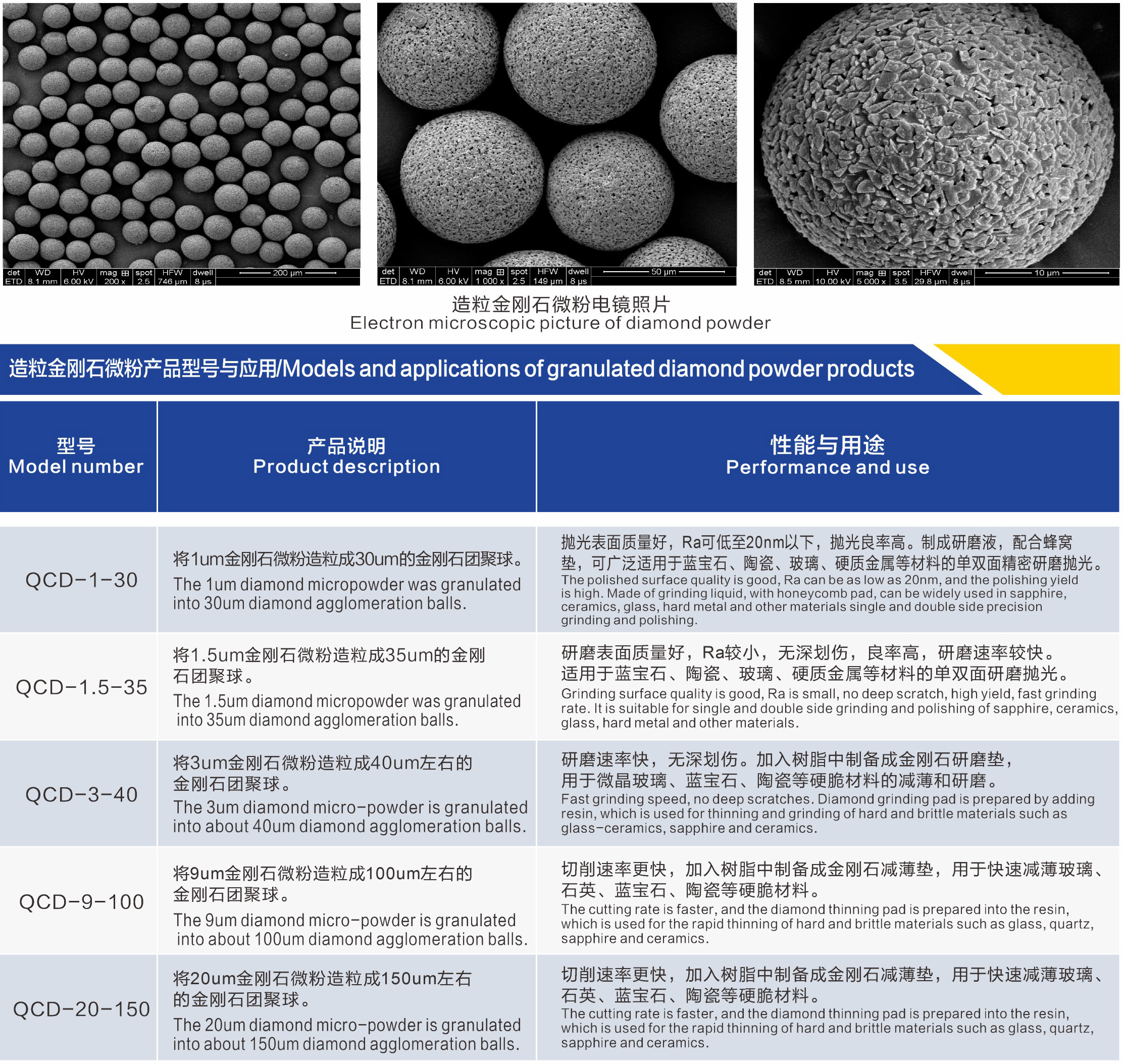 圣高機械采用自研技術和獨特工藝制備出的造粒金剛石微粉顆粒球形度高、研磨速率快,同時Ra值小,不易造成深劃傷,加工良率高。該造粒微粉可制備成金剛石研磨液或鉆石研磨墊,廣泛適用于藍寶石、SiC、微晶玻璃、陶瓷、硬質金屬等硬脆材料的單雙面減薄、研磨和拋光。